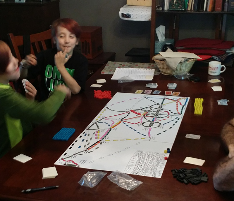 One of our favorite things to do is play board games. Owen and Thomas enjoy deconstructing games and building them with new rules or new pieces. This helps them to better understand the game and put their own spin on it.