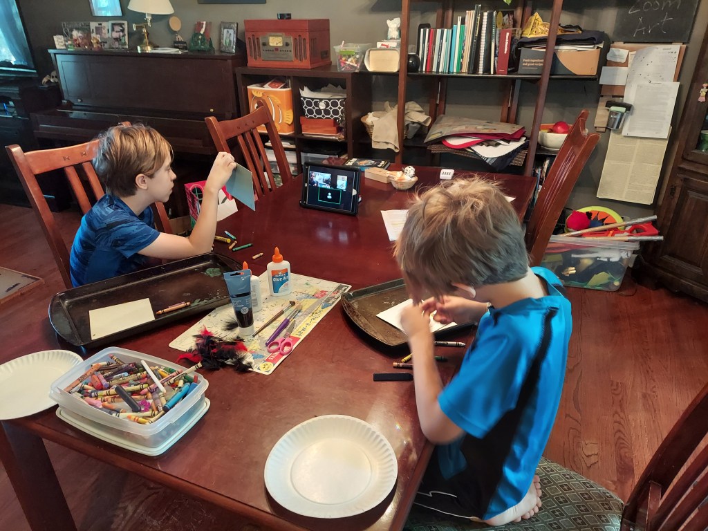 What a special treat we had, getting a virtual art lesson from Ruthie! The Warner boys, Kathy, and our friends the Quebe family learned how to make batik art.